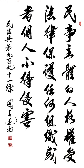 “書·法”活動(dòng)以書寫《中華人民共和國(guó)民法典》法條開筆,未來將對(duì)準(zhǔn)更多的法律。
