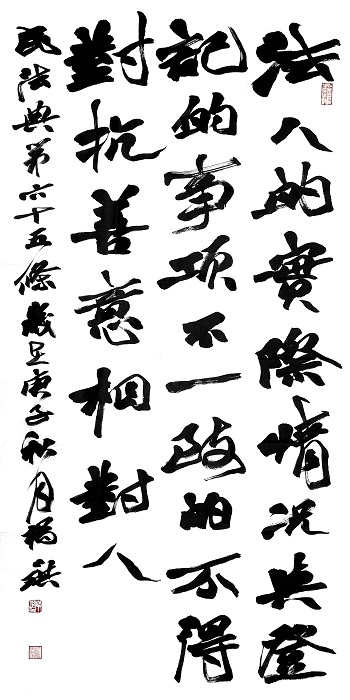 “書·法”活動(dòng)旨在為創(chuàng)新法治宣傳教育,多開一點(diǎn)腦洞、多花一點(diǎn)心思、多出一點(diǎn)力量、多做一點(diǎn)貢獻(xiàn),引領(lǐng)和推動(dòng)更多的人拿起筆來(lái)學(xué)法、寫法,在不斷“書·法”過(guò)程中,提升自身的法治素養(yǎng),在全社會(huì)弘揚(yáng)法治精神。
