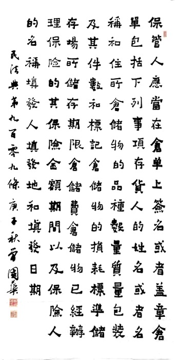 民法典第九百零九條 保管人應當在倉單上簽名或者蓋章。倉單包括下列事項: