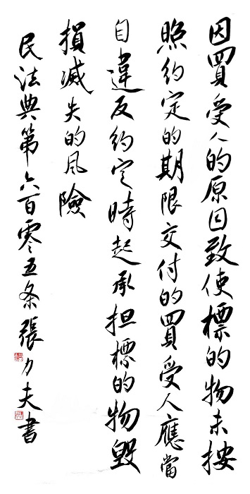 民法典第六百零五條 因買受人的原因致使標的物未按照約定的期限交付的,買受人應當自違反約定時起承擔標的物毀損、滅失的風險。