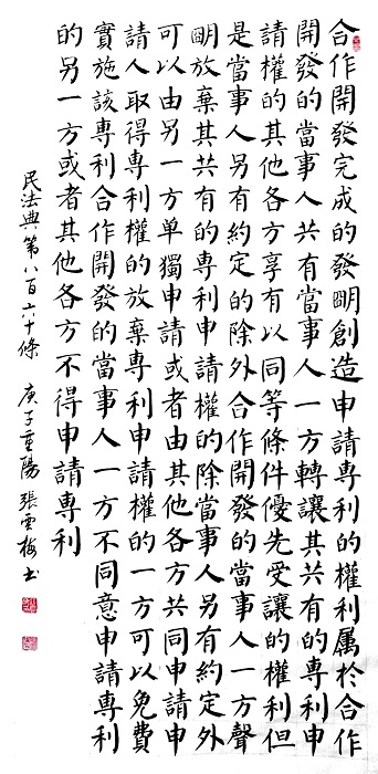 民法典第八百六十條 合作開發(fā)完成的發(fā)明創(chuàng)造,申請專利的權(quán)利屬于合作開發(fā)的當(dāng)事人共有;當(dāng)事人一方轉(zhuǎn)讓其共有的專利申請權(quán)的,其他各方享有以同等條件優(yōu)先受讓的權(quán)利。但是,當(dāng)事人另有約定的除外。