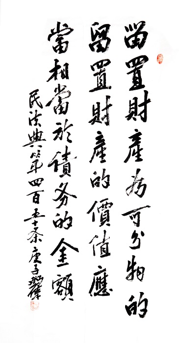 民法典第四百五十條 留置財產(chǎn)為可分物的,留置財產(chǎn)的價值應(yīng)當相當于債務(wù)的金額。