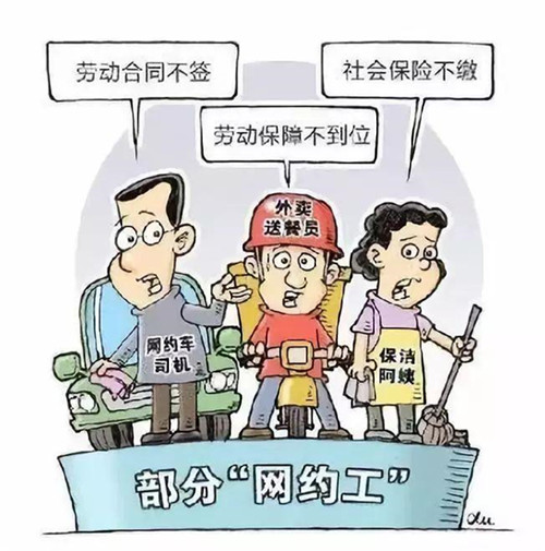 “網(wǎng)約工”打破了原來的“公司+員工”的模式,變成“平臺+個人”,大部分“網(wǎng)約工”以靈活、彈性、平臺、共享等就業(yè)形式存在,他們與互聯(lián)網(wǎng)平臺的法律關(guān)系較難界定。一些不具備法定意義上的勞動合同關(guān)系,如一些網(wǎng)約平臺上的快遞騎手,當(dāng)中有相當(dāng)一部分人員是以“兼職”的身份存在于“網(wǎng)約”的雇傭關(guān)系里。這也讓“網(wǎng)約工”這一新興群體游離于傳統(tǒng)的工傷保險制度以外,缺乏相應(yīng)的保障。