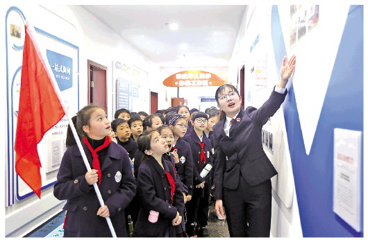 圖為嘉興秀洲實(shí)驗(yàn)小學(xué)學(xué)生參觀嘉興市人民檢察院未成年人保護(hù)辦案工作區(qū)。 法治日?qǐng)?bào)通訊員 鐘華 攝