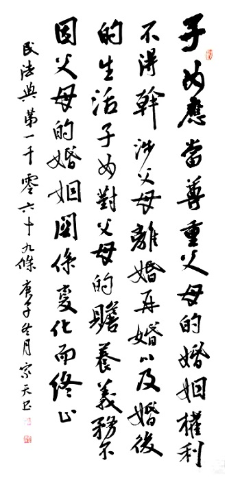 民法典第一千零六十九條 子女應(yīng)當(dāng)尊重父母的婚姻權(quán)利,不得干涉父母離婚、再婚以及婚后的生活。子女對(duì)父母的贍養(yǎng)義務(wù),不因父母的婚姻關(guān)系變化而終止。