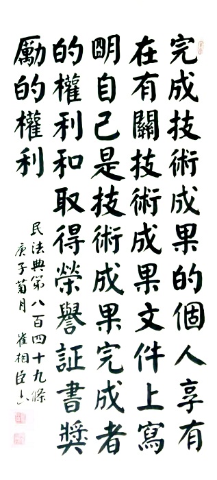 民法典第八百四十九條 完成技術(shù)成果的個人享有在有關(guān)技術(shù)成果文件上寫明自己是技術(shù)成果完成者的權(quán)利和取得榮譽證書、獎勵的權(quán)利。