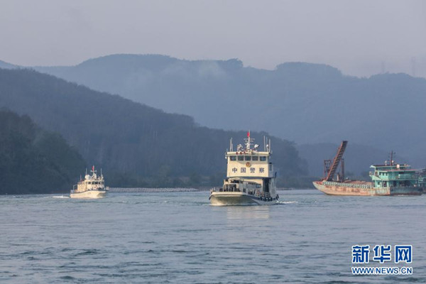 2月23日,第102次中老緬泰湄公河聯(lián)合巡邏執(zhí)法編隊(duì)啟航,中方執(zhí)法艇編隊(duì)巡航經(jīng)過瀾滄江景哈水域?! ⌒氯A社發(fā)(張壽晨 攝)