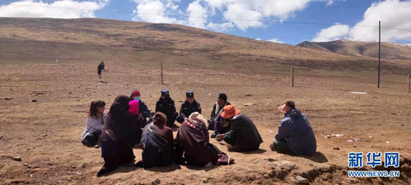 在青海省果洛藏族自治州瑪沁縣大武鄉(xiāng)江前村,糾紛調(diào)解工作組在調(diào)解牧民草場(chǎng)租賃問(wèn)題(4月10日攝)。