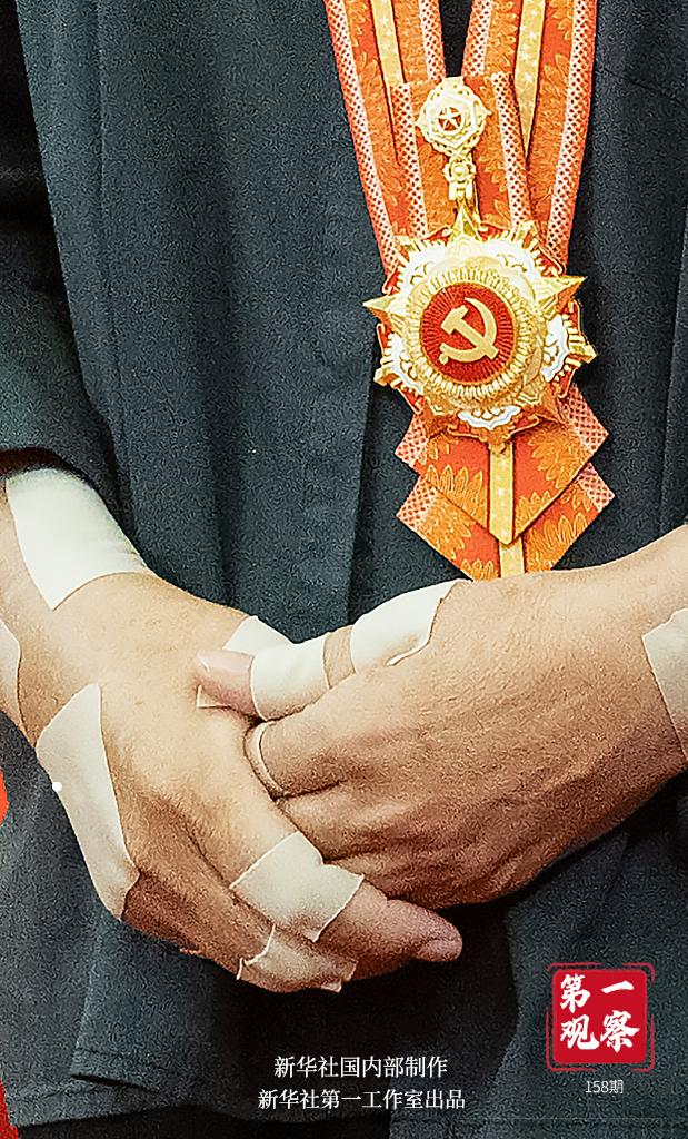 一雙貼滿膏藥的普通勞動者的手,捧起代表黨內(nèi)最高榮譽(yù)的“七一勛章”。