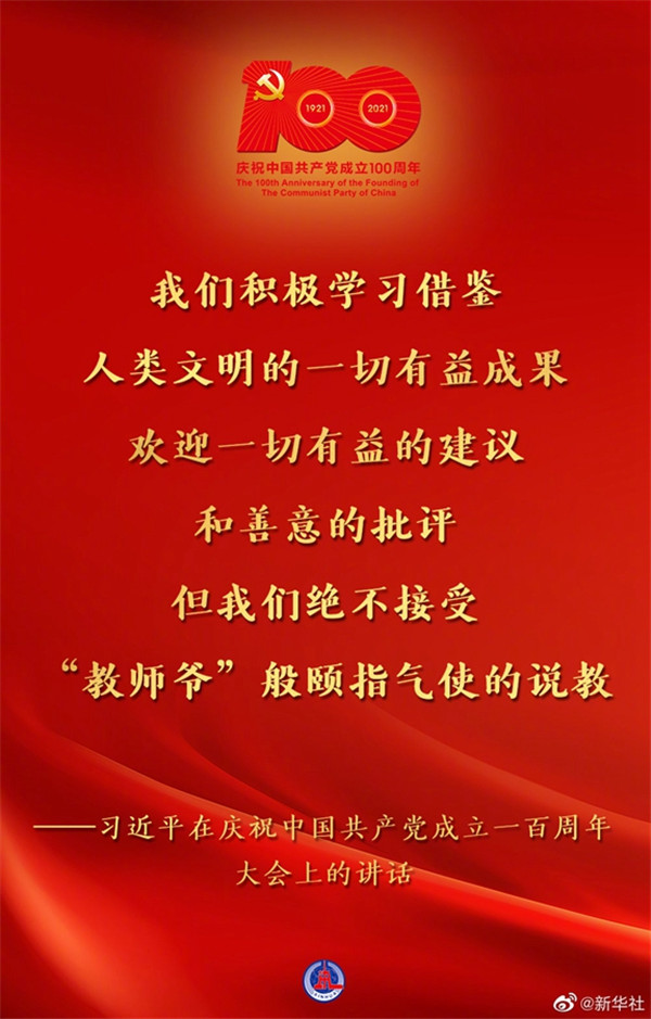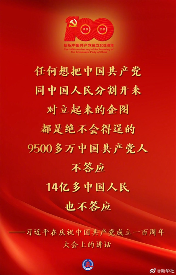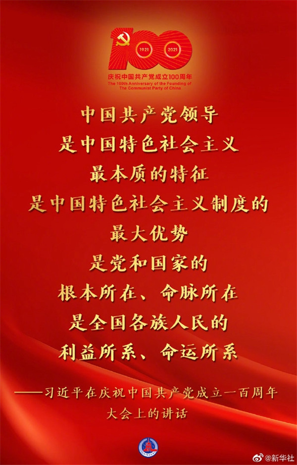 習(xí)近平在慶祝中國共產(chǎn)黨成立一百周年大會(huì)上的講話金句