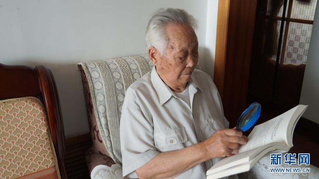 郭瑞祥在大連家中讀書(7月7日攝)。新華社發(fā)(劉丹 攝)