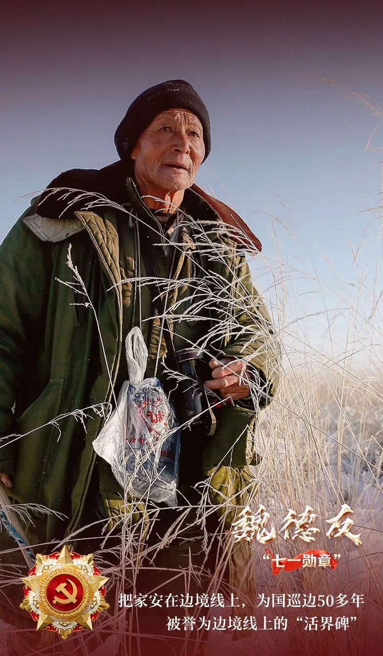 魏德友是邊境線上的“活界碑”,更像一面在草原上行走的“黨旗”。