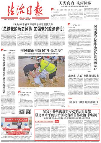 王東峰:黨的十八大以來,習(xí)近平總書記親自謀劃、親自部署、親自推動(dòng)全面依法治國,創(chuàng)造性地提出了一系列新理念新思想新戰(zhàn)略,形成了習(xí)近平法治思想。這一思想博大精深、內(nèi)涵豐富、邏輯嚴(yán)密、系統(tǒng)完備,是我們黨領(lǐng)導(dǎo)法治建設(shè)豐富實(shí)踐和寶貴經(jīng)驗(yàn)的科學(xué)總結(jié),是馬克思主義法治理論中國化最新成果,為中國特色社會(huì)主義法治體系和社會(huì)主義法治國家建設(shè)提供了強(qiáng)大思想武器。我們堅(jiān)持把學(xué)習(xí)貫徹習(xí)近平法治思想作為重大政治責(zé)任和政治任務(wù),作為增強(qiáng)“四個(gè)意識(shí)”、堅(jiān)定“四個(gè)自信”、做到“兩個(gè)維護(hù)”的現(xiàn)實(shí)檢驗(yàn),不折不扣抓好落實(shí),堅(jiān)定不移走中國特色社會(huì)主義法治道路。