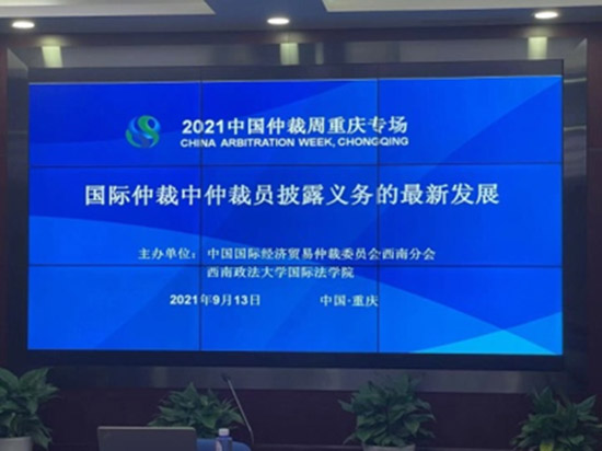 2021年9月13日,“國際仲裁中仲裁員披露義務(wù)的最新發(fā)展”專題講座在重慶成功舉行。本次講座是2021中國仲裁周系列活動之一,由中國國際經(jīng)濟貿(mào)易仲裁委員會(貿(mào)仲)西南分會、西南政法大學國際法學院主辦。
