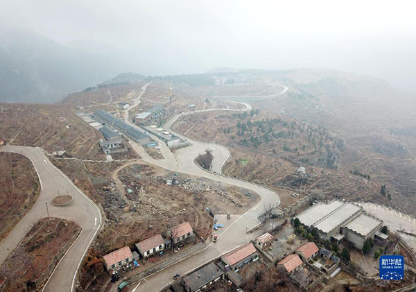 這是在山東省平邑縣地方鎮(zhèn)九間棚村拍攝的道路設(shè)施(2018年12月2日攝,無人機照片)。新華社記者 王凱 攝