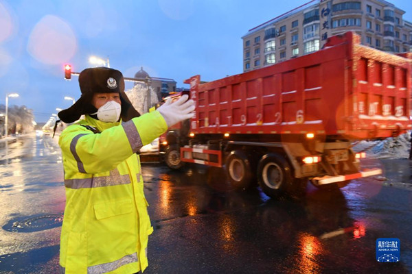 當(dāng)日,冰城哈爾濱迎來降雪、凍雨、大風(fēng)降溫天氣的“合圍”。在哈爾濱市平房區(qū),那些在低溫之下堅(jiān)守戶外的“疫”線工作者頂寒風(fēng)冒雨雪,筑牢疫情防控的安全屏障。