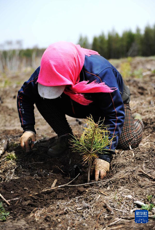 塞罕壩機(jī)械林場的員工在植樹(2014年5月13日攝)。新華社記者 王曉 攝