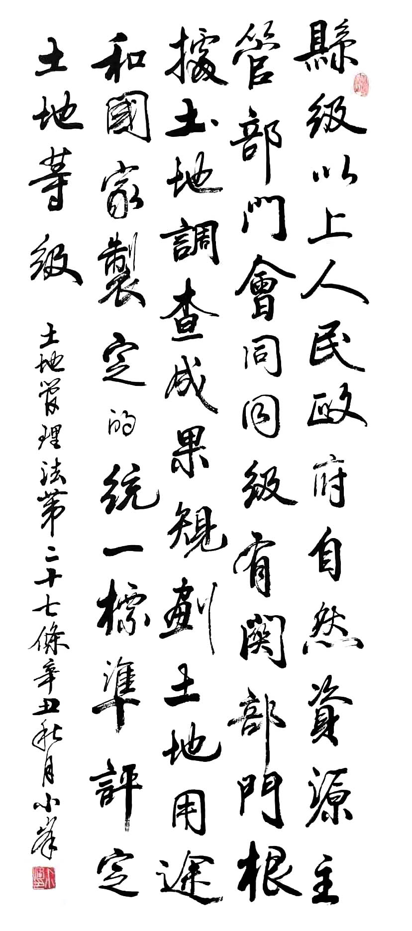 繼1600余位書法家參與書寫《中華人民共和國民法典》全部1260條法條之后,法治日報社聯(lián)合自然資源部法規(guī)司、自然資源部書畫研究會和北京昌平書法家協(xié)會,將筆端對準土地管理“一法一條例”,即《中華人民共和國土地管理法》和《中華人民共和國土地管理法實施條例》。