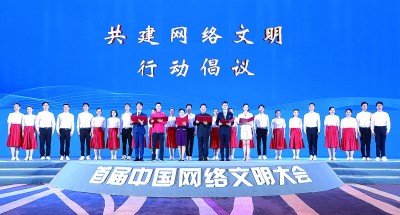 在首屆中國網絡文明大會上,共建網絡文明行動倡議發(fā)布。資料圖片