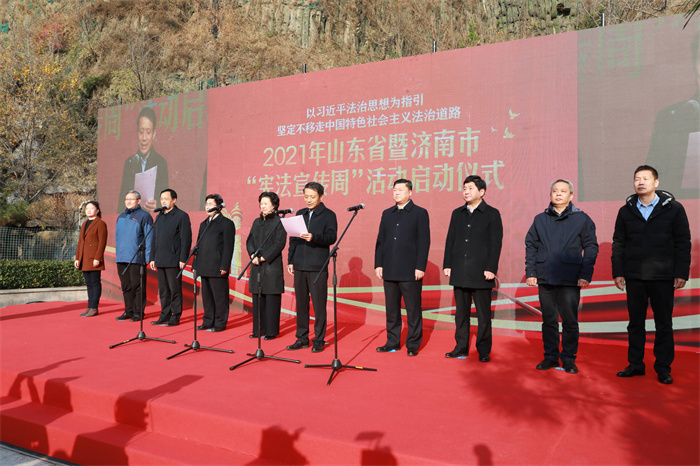 11月29日,2021年山東省暨濟南市“憲法宣傳周”活動啟動儀式在歷下區(qū)洪山憲法主題公園舉行?;顒蝇F(xiàn)場,來自歷下區(qū)的64名行政執(zhí)法人員進行了集體宣誓。