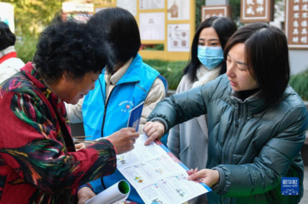 12月3日,湖州市吳興區(qū)愛(ài)山街道聯(lián)合司法部門在獅子巷社區(qū)憲法主題公園向居民發(fā)放憲法宣傳資料。