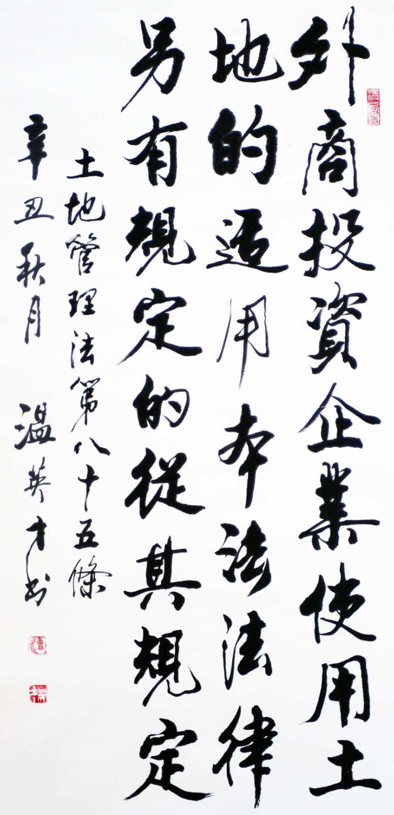 繼1600余位書法家參與書寫《中華人民共和國民法典》全部1260條法條之后,法治日報社聯(lián)合自然資源部法規(guī)司、自然資源部書畫研究會和北京昌平書法家協(xié)會,將筆端對準土地管理“一法一條例”,即《中華人民共和國土地管理法》和《中華人民共和國土地管理法實施條例》。