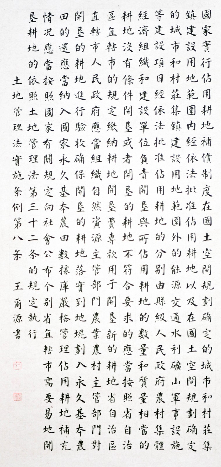 繼1600余位書法家參與書寫《中華人民共和國民法典》全部1260條法條之后,法治日報社聯(lián)合自然資源部法規(guī)司、自然資源部書畫研究會和北京昌平書法家協(xié)會,將筆端對準(zhǔn)土地管理“一法一條例”,即《中華人民共和國土地管理法》和《中華人民共和國土地管理法實施條例》。