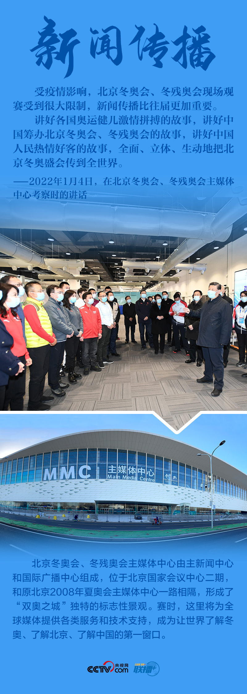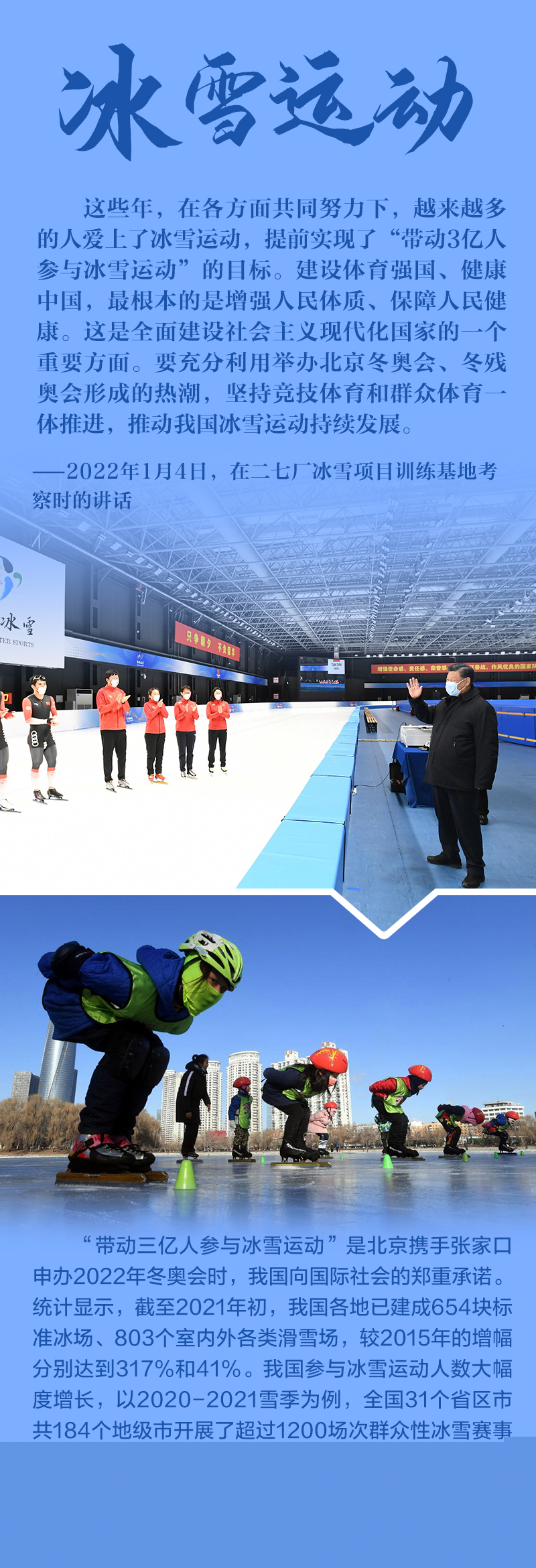 “今天是元旦后上班第一天,我來(lái)專題調(diào)研北京冬奧會(huì)、冬殘奧會(huì)籌備工作,主要是來(lái)給大家鼓勁加油?!?月4日,北京冬奧會(huì)開(kāi)幕倒計(jì)時(shí)一個(gè)月之際,習(xí)近平總書(shū)記在北京深入體育場(chǎng)館、媒體中心、訓(xùn)練基地等,實(shí)地了解2022年冬奧會(huì)、冬殘奧會(huì)籌辦備賽情況。