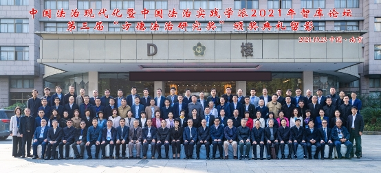 2021年10月23日,中國法治現(xiàn)代化暨中國法治實踐學(xué)派2021年智庫論壇、第三屆“方德法治研究獎”頒獎典禮在南京舉行。