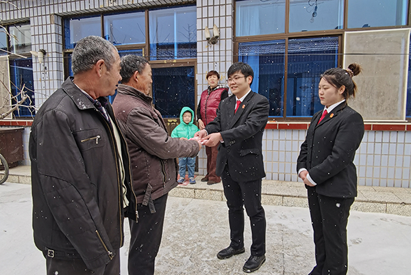春節(jié)前夕,《法治日?qǐng)?bào)》記者來到陽(yáng)原縣人民法院,一進(jìn)入法院訴訟服務(wù)中心,張少卿正準(zhǔn)備把剛剛要回來的農(nóng)民工工資送到等著過年花銷的農(nóng)民工家中,記者便跟隨他一起驅(qū)車前往。