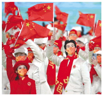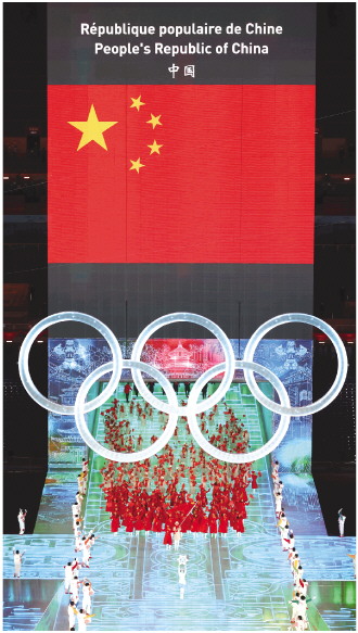 2月4日晚,第二十四屆冬季奧林匹克運(yùn)動(dòng)會(huì)開幕式在北京國(guó)家體育場(chǎng)舉行。圖為中國(guó)代表團(tuán)在開幕式上入場(chǎng)。 新華社記者 楊磊 攝