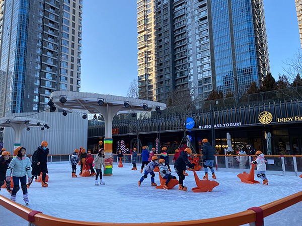 2月4日,市民在北京市朝陽區(qū)三元橋附近的一家冰場享受冰雪運動樂趣。