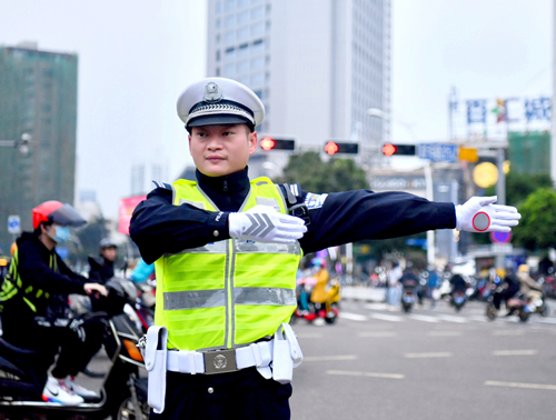 圖為2022年元旦期間,王偉堅守崗位指揮交通