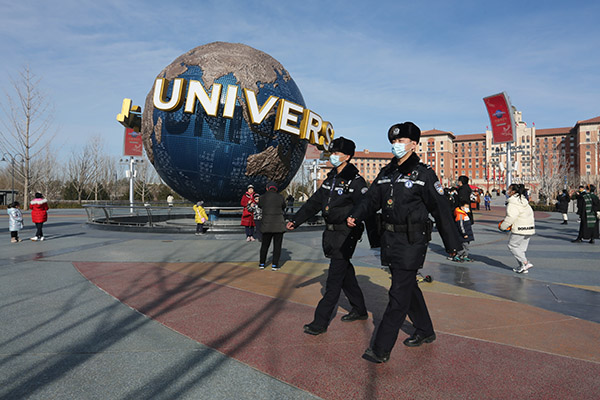 晴空如洗,游人如織。春節(jié)前夕,《法治日報》記者來到北京環(huán)球度假區(qū),跟隨北京市公安局通州分局文景派出所民警,體驗他們“日行三萬步”的工作日常。