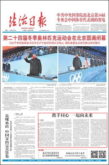 北京冬奧會(huì)為中國發(fā)展提供了新機(jī)遇,也為世界貢獻(xiàn)了更多可能?!耙黄鹣蛭磥怼笔潜本┒瑠W會(huì)的愿景,簡潔凝練的表述中蘊(yùn)含著博大智慧和深厚情懷,發(fā)出了構(gòu)建人類命運(yùn)共同體的中國倡議。各國運(yùn)動(dòng)員在賽場(chǎng)上,呈現(xiàn)給世界的不僅有挑戰(zhàn)自我、突破極限的拼搏精神,還有相互支持、彼此成就的美好友誼。在對(duì)手比賽失利后主動(dòng)安慰、成功后真誠擁抱祝福……一幕幕心手相連、情意相牽的動(dòng)人場(chǎng)景,在瞬間定格成為永恒。北京冬奧會(huì)以全球共通的體育語言和體育精神,積極踐行了“更快、更高、更強(qiáng)——更團(tuán)結(jié)”的奧林匹克格言,生動(dòng)地詮釋著人類命運(yùn)共同體的理念,向全世界傳遞出明確信息:奧林匹克精神是人類團(tuán)結(jié)的燈塔,任何國家、民族、宗教的人民都可以超越分歧,實(shí)現(xiàn)團(tuán)結(jié)與合作。