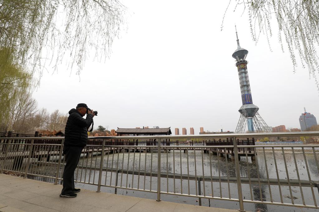 3月18日,王汝春在石家莊市裕華區(qū)世紀公園拍照。(受訪者供圖)