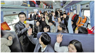 圖為佟麗華在農(nóng)民工專(zhuān)列上普法。 受訪(fǎng)者供圖
