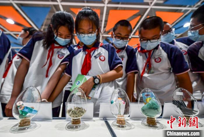學生們觀看毒品模型,了解毒品的種類和形狀。 劉新 攝
