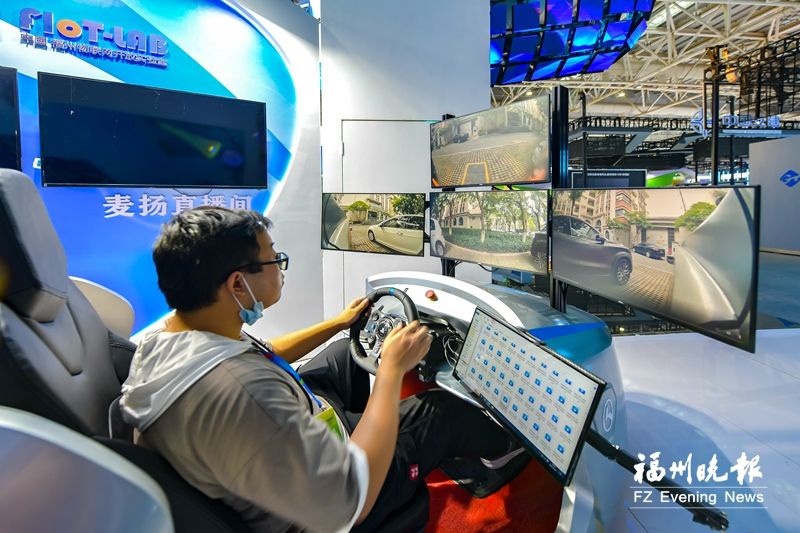 在國家物聯(lián)網(wǎng)產(chǎn)業(yè)示范基地——中國·馬尾展區(qū),記者體驗(yàn)了一把遠(yuǎn)程駕駛。