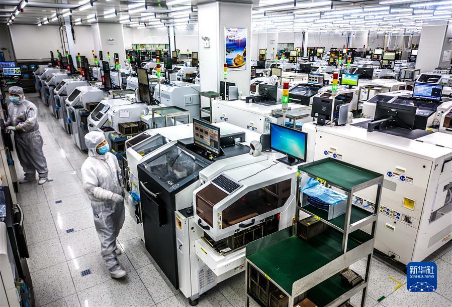 2022年5月26日,在安徽省合肥經(jīng)濟技術開發(fā)區(qū)的合肥通富微電子有限公司,員工在裝片生產線上作業(yè)。新華社發(fā)(解琛 攝)