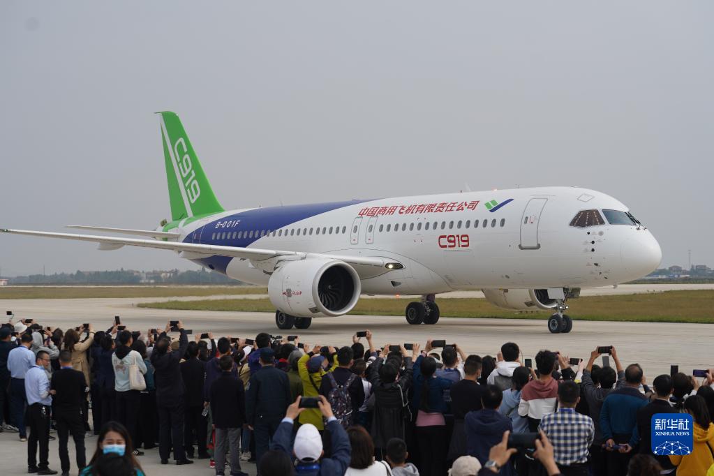 在2020南昌飛行大會上,國產(chǎn)大飛機(jī)C919亮相江西南昌瑤湖機(jī)場并進(jìn)行飛行表演(2020年10月31日攝)。新華社記者 周密 攝