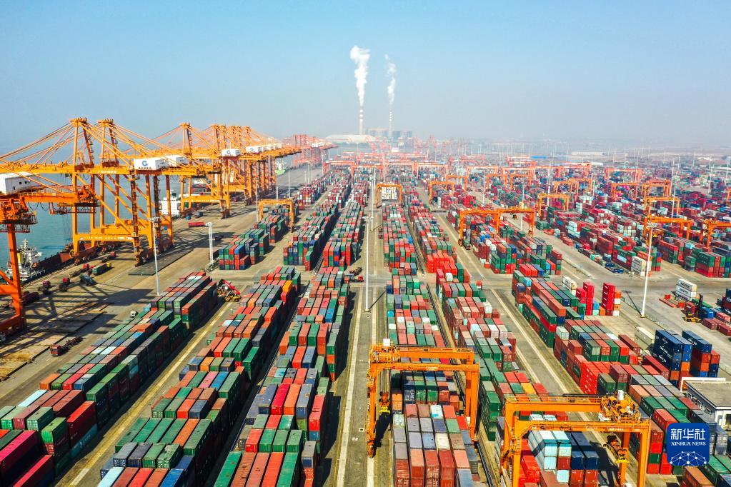 這是廣西欽州港集裝箱碼頭(2021年1月14日攝,無人機(jī)照片)。新華社記者 曹祎銘 攝