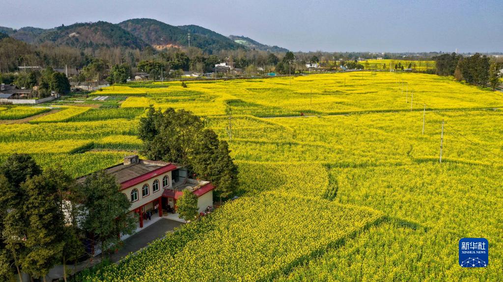 在四川成都崇州市拍攝的油菜花田(2020年2月25日攝,無人機(jī)照片)。新華社記者 王曦 攝