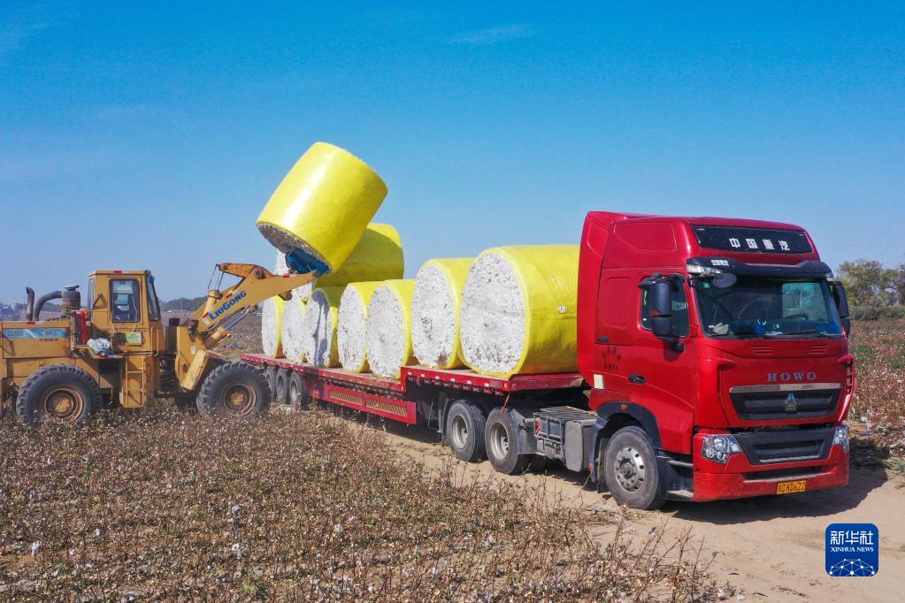 新疆生產(chǎn)建設(shè)兵團(tuán)第六師一〇三團(tuán)蔡家湖鎮(zhèn)的職工在采收棉花(2020年9月23日攝)。新華社發(fā)(李華北 攝)