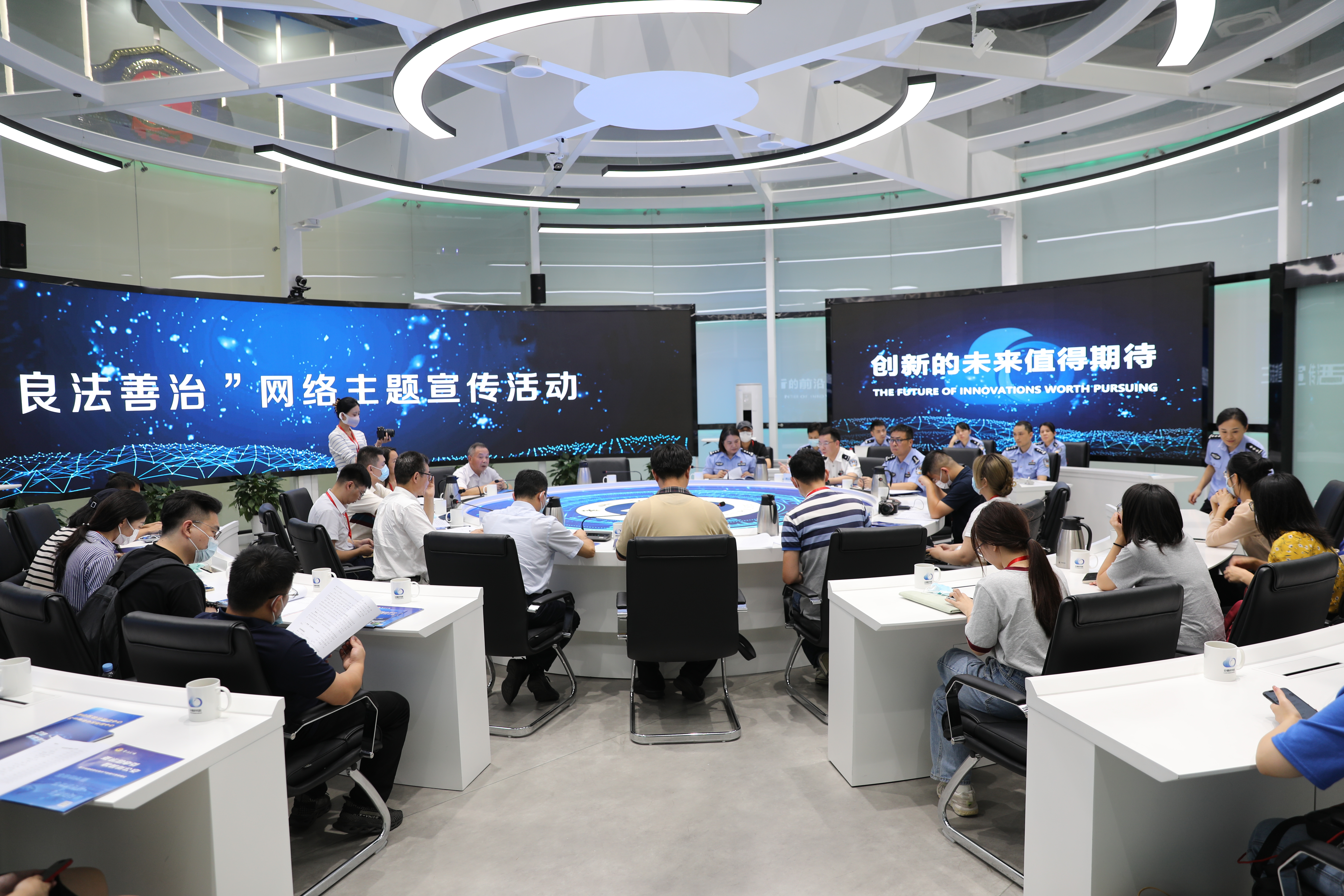 9月6日下午,“良法善治”網(wǎng)絡(luò)主題宣傳活動(dòng)采訪團(tuán)走進(jìn)杭州市公安局蕭山區(qū)分局。圖為座談交流環(huán)節(jié)現(xiàn)場。
