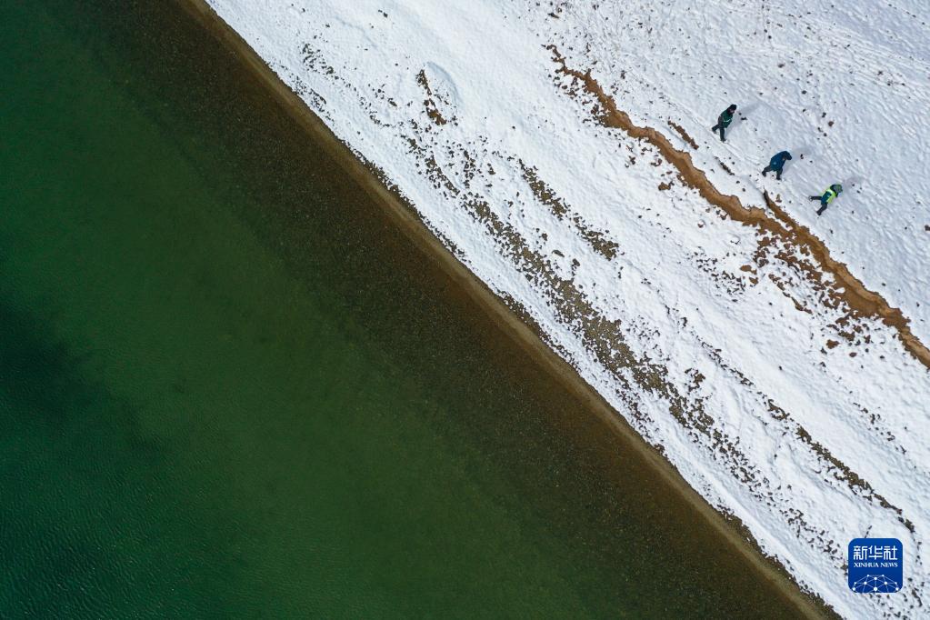 在青海省果洛藏族自治州瑪多縣扎陵湖鄉(xiāng)勒那村,三江源國家公園黃河源園區(qū)生態(tài)管護員在巡護(2021年10月20日攝,無人機照片)。 新華社記者 張龍 攝