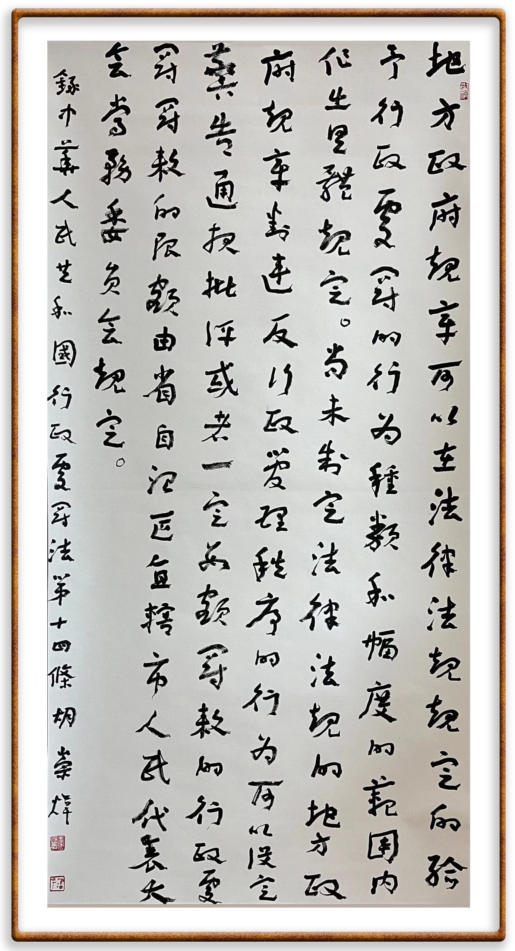 繼《中華人民共和國民法典》《中華人民共和國土地管理法》《中華人民共和國土地管理法實施條例》《中華人民共和國法律援助法》之后,法治日報社聯(lián)合北京市司法局、北京市書法家協(xié)會,將筆端對準《中華人民共和國憲法》和《中華人民共和國行政處罰法》。