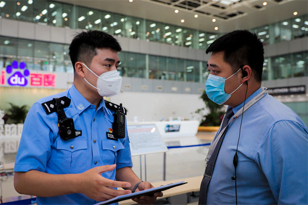 圖為民警到百度公司檢查企業(yè)安全生產(chǎn)責(zé)任落實(shí)情況。