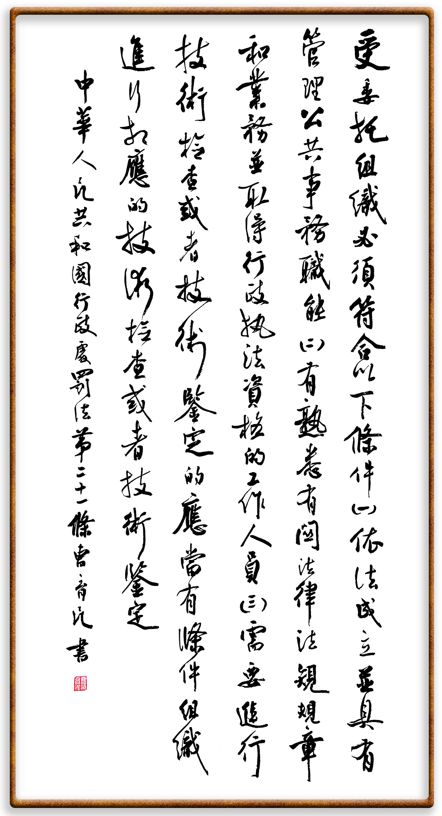 繼《中華人民共和國民法典》《中華人民共和國土地管理法》《中華人民共和國土地管理法實(shí)施條例》《中華人民共和國法律援助法》之后,法治日報社聯(lián)合北京市司法局、北京市書法家協(xié)會,將筆端對準(zhǔn)《中華人民共和國憲法》和《中華人民共和國行政處罰法》。