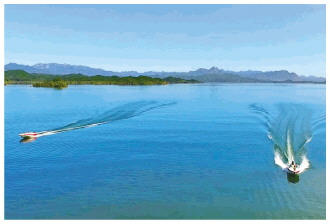 圖為密云水庫(kù)綜合執(zhí)法大隊(duì)在水面上巡查。